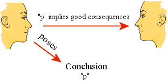 For example, if someone were to say "If sixteen-headed purple unicorns don't exist, then I would be miserable, so they must exist" it would be clear that this would not be a good line of reasoning. It is important to note that the consequences in question are the consequences that stem from the belief.